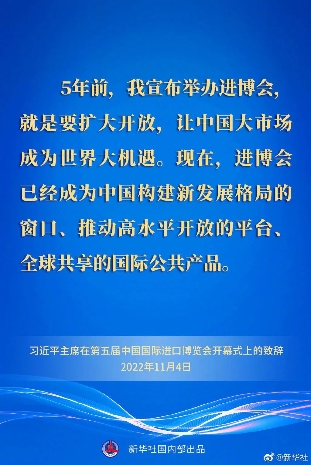 習(xí)近平指出,5年前,我宣布舉辦進(jìn)博會,就是要擴大開放,讓中國大市場成為世界大機遇?,F(xiàn)在,進(jìn)博會已經(jīng)成為中國構(gòu)建新發(fā)展格局的窗口、推動高水平開放的平臺、全球共享的國際公共產(chǎn)品。