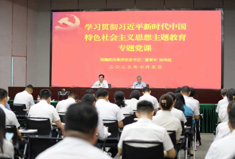 7月5日,河南航投集團(tuán)黨委書記、董事長張明超以“牢記囑托 不負(fù)使命 勇建新功”為題,為集團(tuán)全體黨員講專題黨課;總經(jīng)理、黨委副書記、副董事長李東棵主持。集團(tuán)領(lǐng)導(dǎo)班子成員、總部管理人員代表及各子公司主要負(fù)責(zé)人等80余人在主會場參學(xué)。黨課以“主會場+視頻分會場”方式進(jìn)行。
