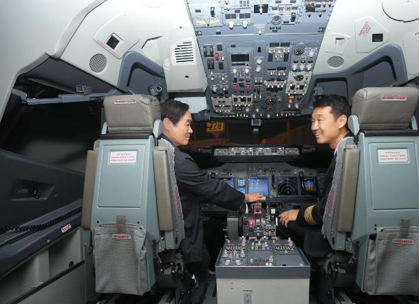 隨后,劉奇葆一行還實(shí)地了解了飛行訓(xùn)練中心和乘務(wù)訓(xùn)練中心。在全動(dòng)模擬機(jī)艙內(nèi),劉奇葆仔細(xì)查看了內(nèi)部構(gòu)造和儀表功能等,并與現(xiàn)場(chǎng)的教員一起進(jìn)行了試飛。