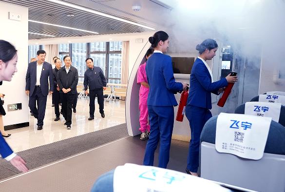 在乘務(wù)訓(xùn)練中心,不少學(xué)員正在進(jìn)行各科目的訓(xùn)練,劉奇葆詢問(wèn)了緊急逃生、水上避險(xiǎn)等訓(xùn)練項(xiàng)目的設(shè)備及人員配備情況。