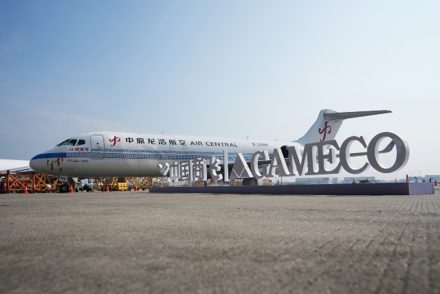 10月30日,中國(guó)商飛在廣州向河南航投集團(tuán)交付ARJ21客改貨飛機(jī)。作為啟動(dòng)用戶,這也是河南航投收到的首架ARJ21客改貨飛機(jī)。中國(guó)商飛黨委書記、董事長(zhǎng)賀東風(fēng)向集團(tuán)黨委書記、董事長(zhǎng)張明超移交交付紀(jì)念鑰匙。中國(guó)商飛黨委副書記、董事譚萬(wàn)庚,中原龍浩航空董事長(zhǎng)郭建業(yè)等致辭,中國(guó)商飛黨委常委、副總經(jīng)理、總會(huì)計(jì)師吳永良向河南航投租賃頒發(fā)飛機(jī)銷售證,民航中南局副局長(zhǎng)陳維向中原龍浩航空頒發(fā)單機(jī)適航證、國(guó)籍登記證、無(wú)線電臺(tái)證。中國(guó)商飛黨委常委、副總經(jīng)理張玉金主持儀式。