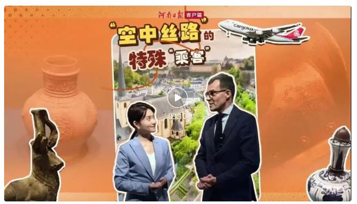 從2013年至今,鄭盧“空中絲路”的建設(shè)在兩國元首的關(guān)注下取得豐碩成果。從兩家企業(yè)的投資合作,發(fā)展到中盧之間的商貿(mào)往來、綠色能源、客運旅游、人文交流等各方面。2018年,河南航投與河南省文物局簽署合作意向書,根據(jù)約定,河南航投將提供航空運輸便利,共同促進河南文物的對外開放和交流、促進兩地民心相通,由鄭盧“空中絲路”保障了河南文物從鄭州抵達(dá)盧森堡。當(dāng)年11月在盧森堡開展時,米歇爾·波費爾主持了開幕式,河南航投與盧森堡貨航負(fù)責(zé)人一同出席,豫盧雙方在現(xiàn)場達(dá)成深化文化交流的意愿。