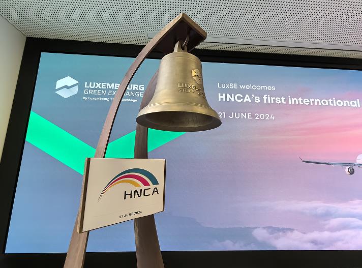 當(dāng)?shù)貢r間6月21日上午,中豫航空集團(tuán)以河南航投為主體發(fā)行的3年期人民幣境外債券上市儀式在盧森堡證券交易所舉行。這是中國企業(yè)在歐洲發(fā)行的首只支持可持續(xù)航空燃料(SAF)的綠色債券,也是河南企業(yè)發(fā)行的首只離岸人民幣綠色債券,鄭盧“空中絲路”資金融通實現(xiàn)新突破。