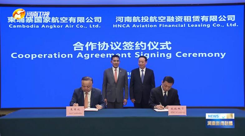 11月2日上午,河南航投航空融資租賃有限公司(以下簡(jiǎn)稱航投租賃)與柬埔寨國(guó)家航空公司簽署融資租賃合作協(xié)議,開展跨境飛機(jī)租賃業(yè)務(wù)。省委常委、常務(wù)副省長(zhǎng)孫守剛與柬埔寨民航國(guó)務(wù)秘書處大臣兼柬埔寨國(guó)家航空公司董事會(huì)主席毛哈萬納共同見證協(xié)議簽署。