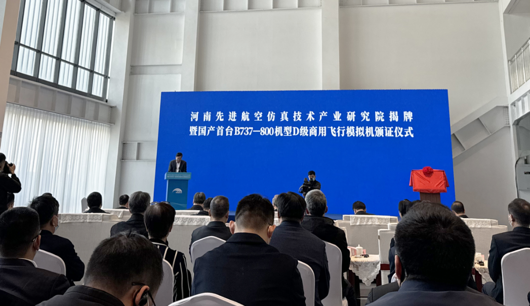 11月26日,河南先進航空仿真技術(shù)產(chǎn)業(yè)研究院揭牌暨國產(chǎn)首臺B737-800機型D級商用飛行模擬機頒證儀式在河南航投航空培訓(xùn)中心舉行。省委書記樓陽生出席并講話。樓陽生為河南先進航空仿真技術(shù)產(chǎn)業(yè)研究院揭牌。中國工程院院士趙沁平受聘擔(dān)任研究院專家技術(shù)委員會主任。中國商用飛機有限責(zé)任公司黨委書記、董事長賀東風(fēng),省領(lǐng)導(dǎo)孫守剛、陳星、安偉、劉尚進出席。