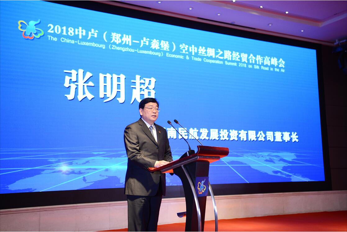 4月17日,2018中盧(鄭州—盧森堡)“空中絲綢之路”經(jīng)貿(mào)合作高峰會(huì)在鄭州舉行,來自河南和盧森堡兩地的政府官員、企業(yè)代表、專家學(xué)者碰撞思想火花,凝聚智慧力量。河南航投黨委書記、董事長張明超出席峰會(huì)并發(fā)言。